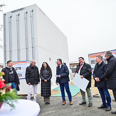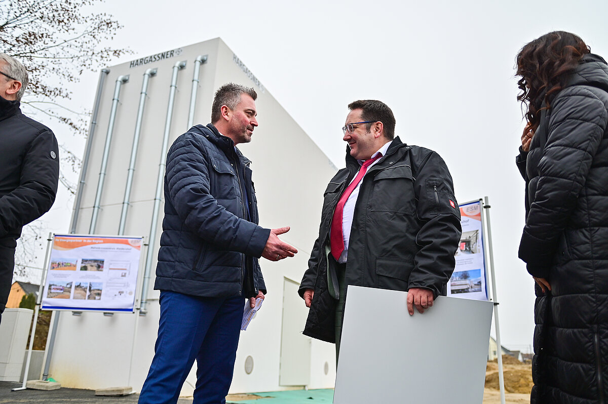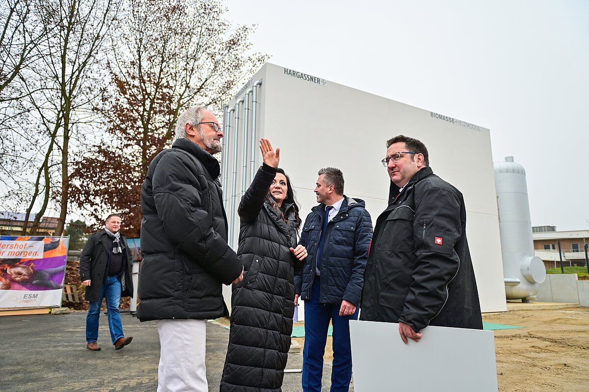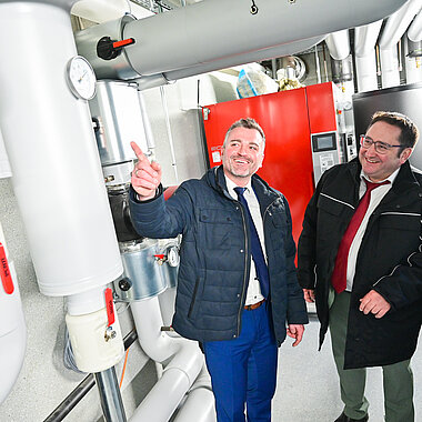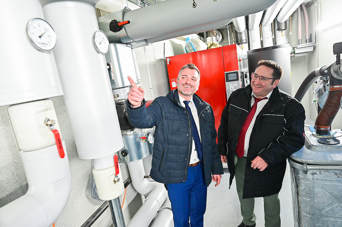 Seit Anfang Dezember sorgt die Pelletheizung der Energieversorgung Selb-Marktredwitz GmbH (ESM) für warme Räume in der Jobst-vom-Brandt-Schule und dem Kinderhaus „Stadttüftler“ in Waldershof. Schon bei der Planung der Anlage legte man Wert auf eine umweltverträgliche Brennstoffwahl für die kleine Nahwärmeinsel. Das nachhaltige Konzept wurde jetzt zusätzlich belohnt. Bayerns Wirtschaftsstaatssekretär Tobias Gotthardt ließ es sich nicht nehmen, die zukunftsweisende, modular aufgebaute Heizzentrale selbst zu besichtigen und ESM-Geschäftsführer Mathias Jakob die Urkunde zum Förderprogramm „BioWärme Bayern“ zu überreichen.