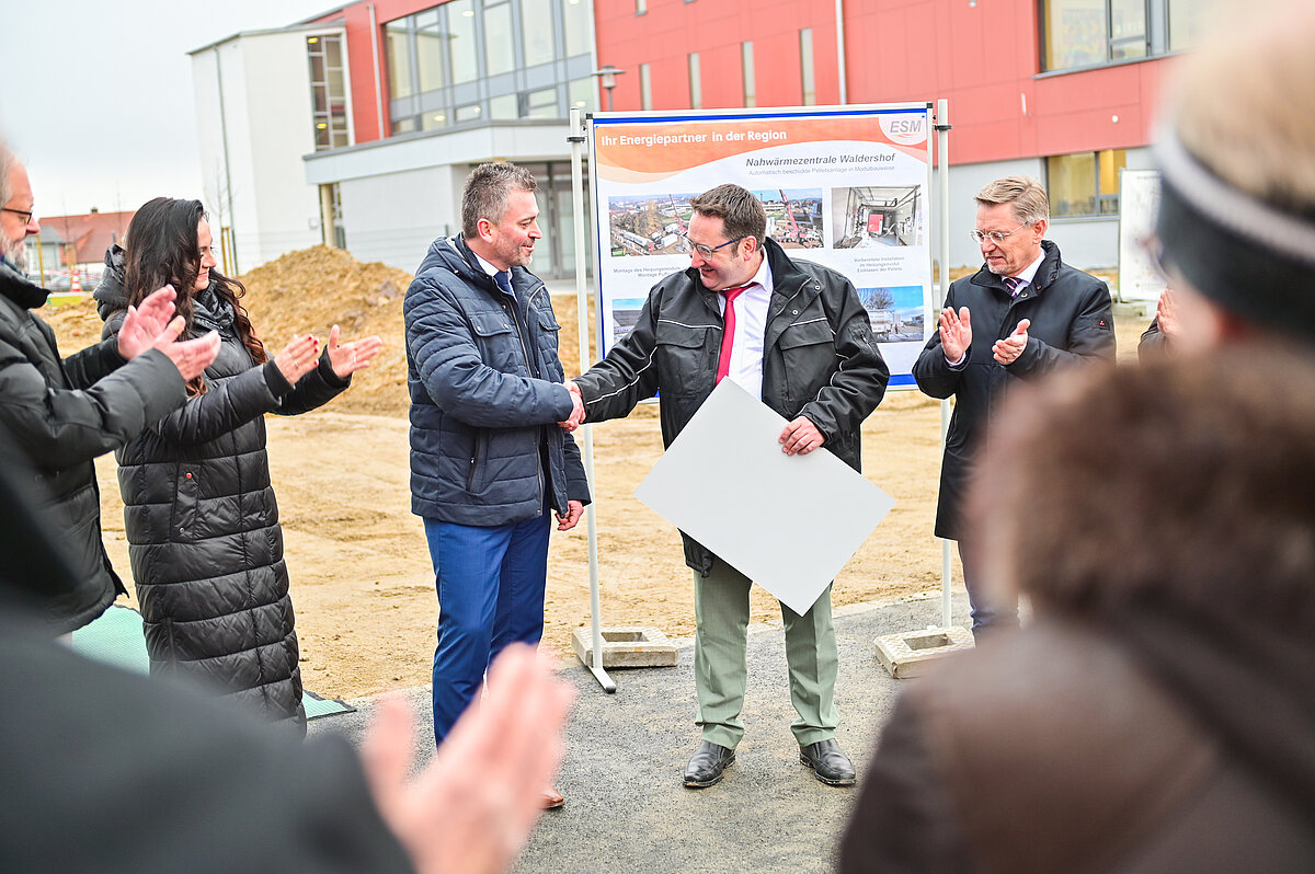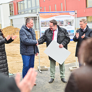 Nahwärmezentrale Waldershof wird von „BioWärme Bayern“ gefördert - Bayerns Wirtschaftsstaatssekretär Tobias Gotthardt übergibt Förderurkunde persönlich.